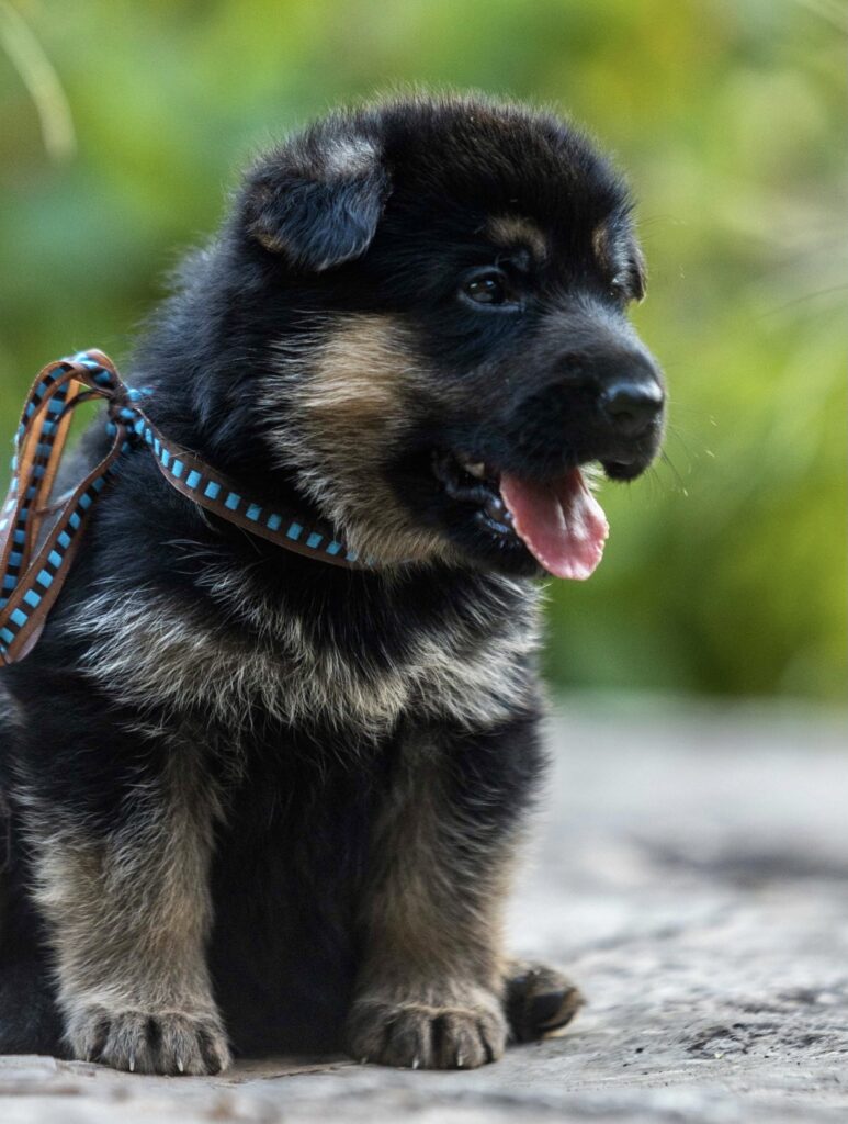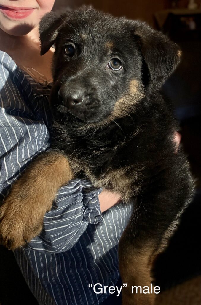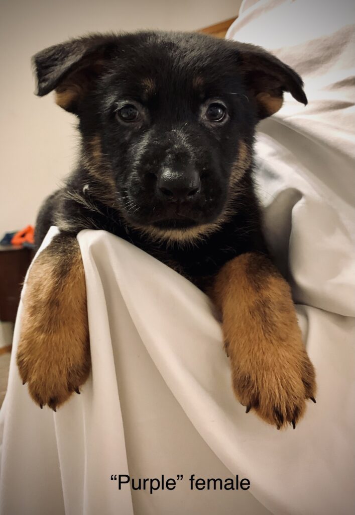 We are excited to announce that our solid black female has seven puppies on the ground from our gorgeous West German male, Duke!