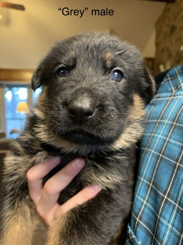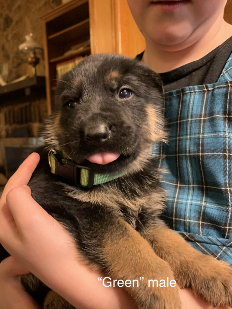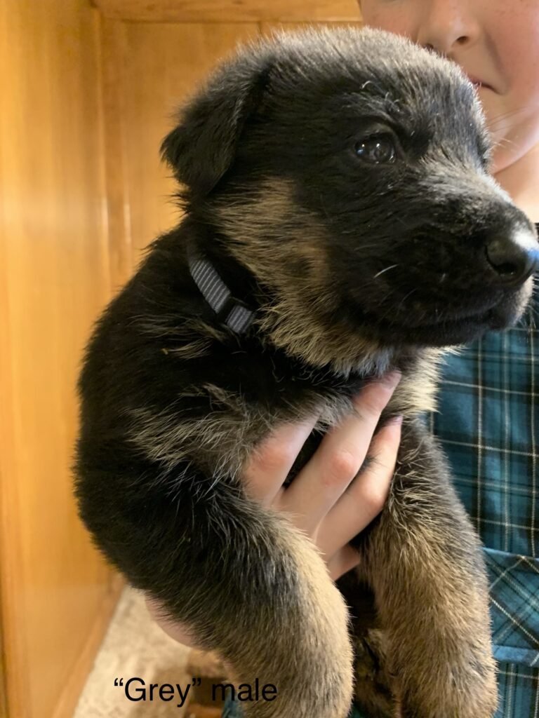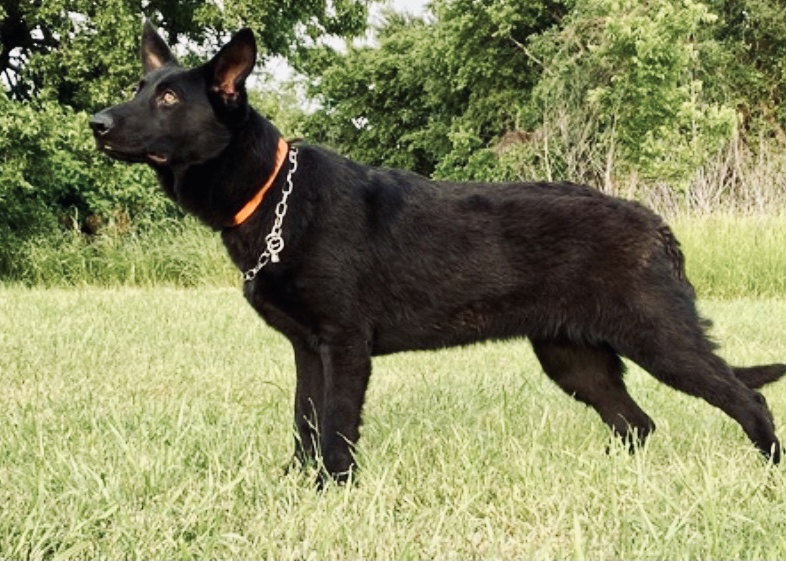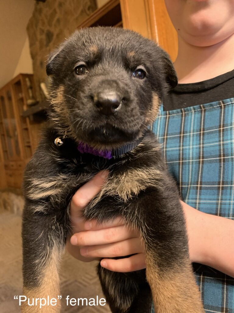 We are excited to announce that our solid black female has seven puppies on the ground from our gorgeous West German male, Duke!