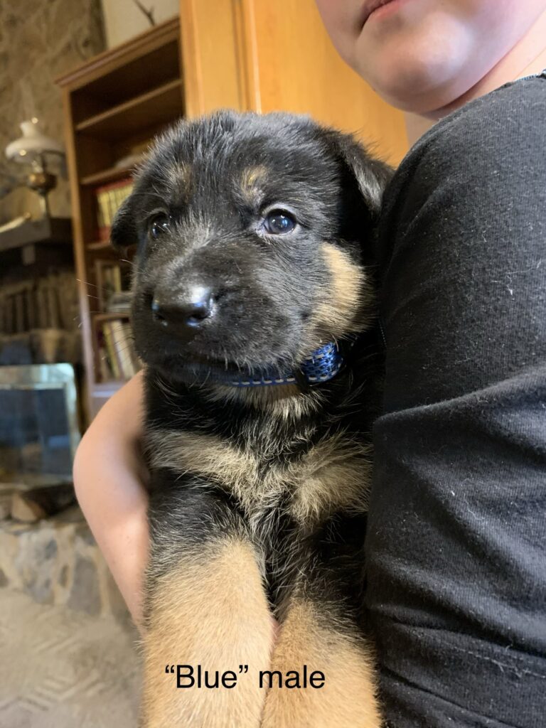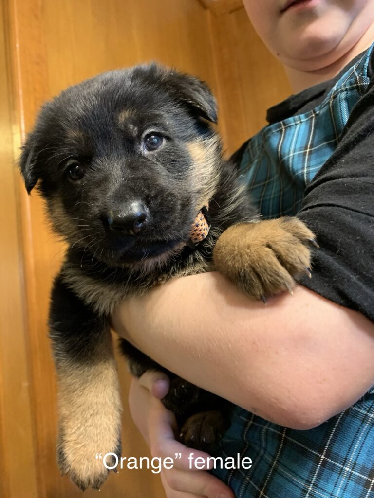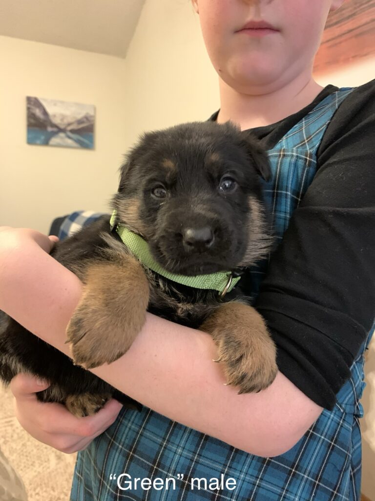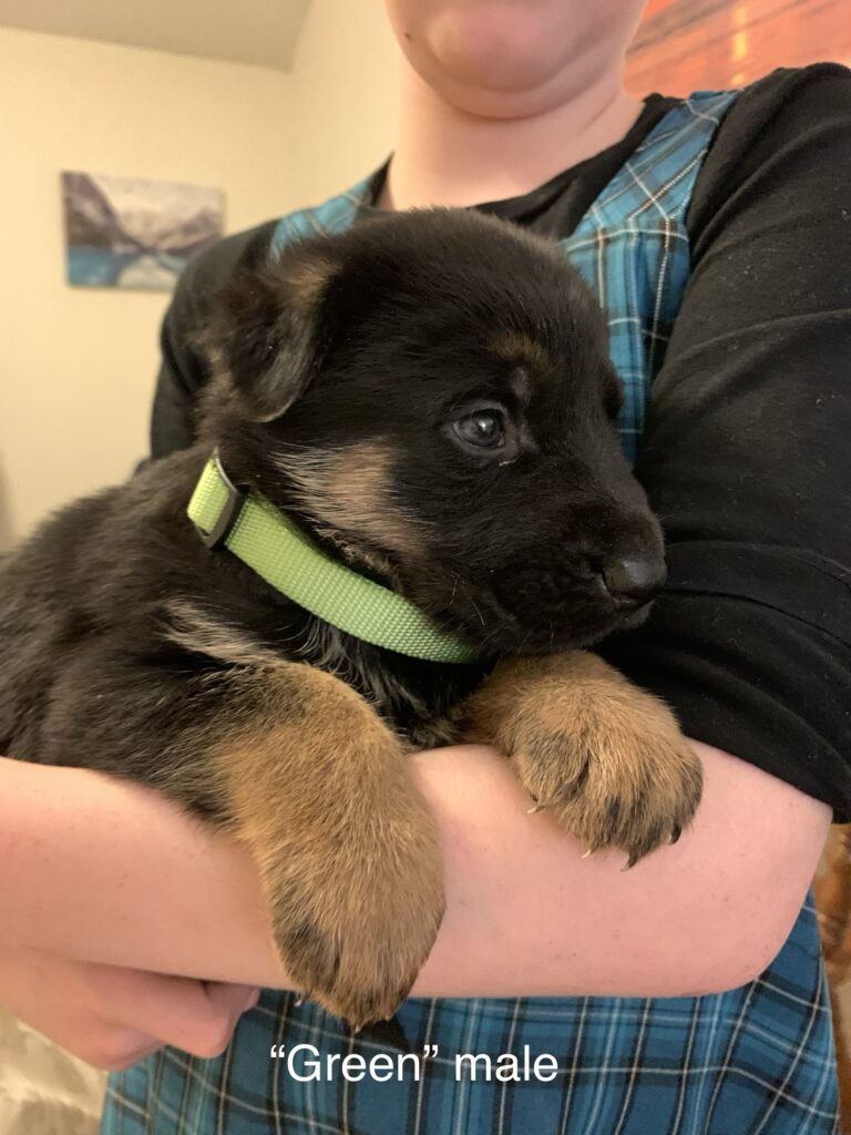 We are excited to announce that our solid black female has seven puppies on the ground from our gorgeous West German male, Duke!
