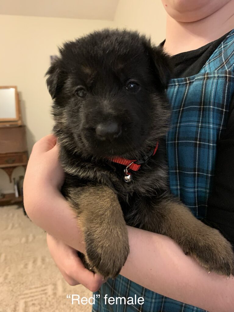 We expect the pups end up blanket black and red–featuring their sire’s distinctive auburn accents. Adoption fee: $2,500